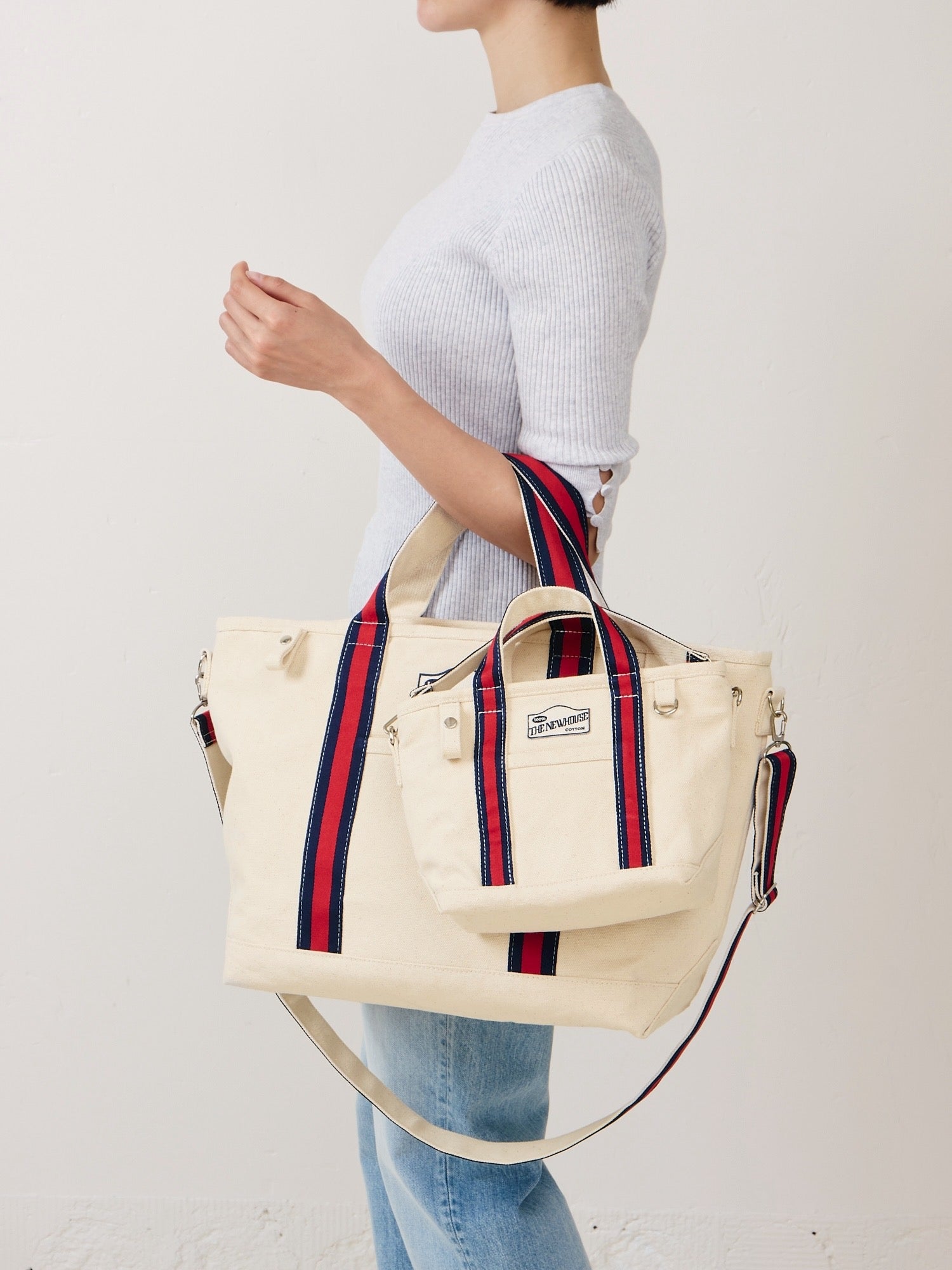 LEON TOTEの魅力をそのままに、アクセサリー感覚で楽しめる BABY LEON TOTE。今シーズンは、LEON TOTE同様、新色のユニオンストライプのハンドルを採用しました。コンパクトなサイズ感ながら、収納力は抜群で、日常から旅先まで様々なシーンで活躍します。しっかりとした佇まいで、自立する安心感も魅力。今回からは、内側に新たに2種のポケットをプラス。小物をすっきりと整理でき、ミニバッグとしての使いやすさが向上しました。ポケット配置や、表面のストラップ&キーリングは、LEON TOTE同様の仕様をそのままミニサイズに落とし込んでいます。ショルダーストラップには、長さ調整が可能なアジャスターを追加。体型やスタイリングに合わせて、バランスよく持てるようになりました。さらに、ショルダーストラップに加えてハンディなミニストラップが付属。LEON TOTEやお手持ちのバッグ、トランクにドッキングしたり、片側だけ付けてクラッチのように持ったりと、自由なアレンジが楽しめます。デイリーに、バケーションに。ファッション性とユーティリティを兼ね備えたミニバッグを、“ポケット感覚”で取り入れてください。
