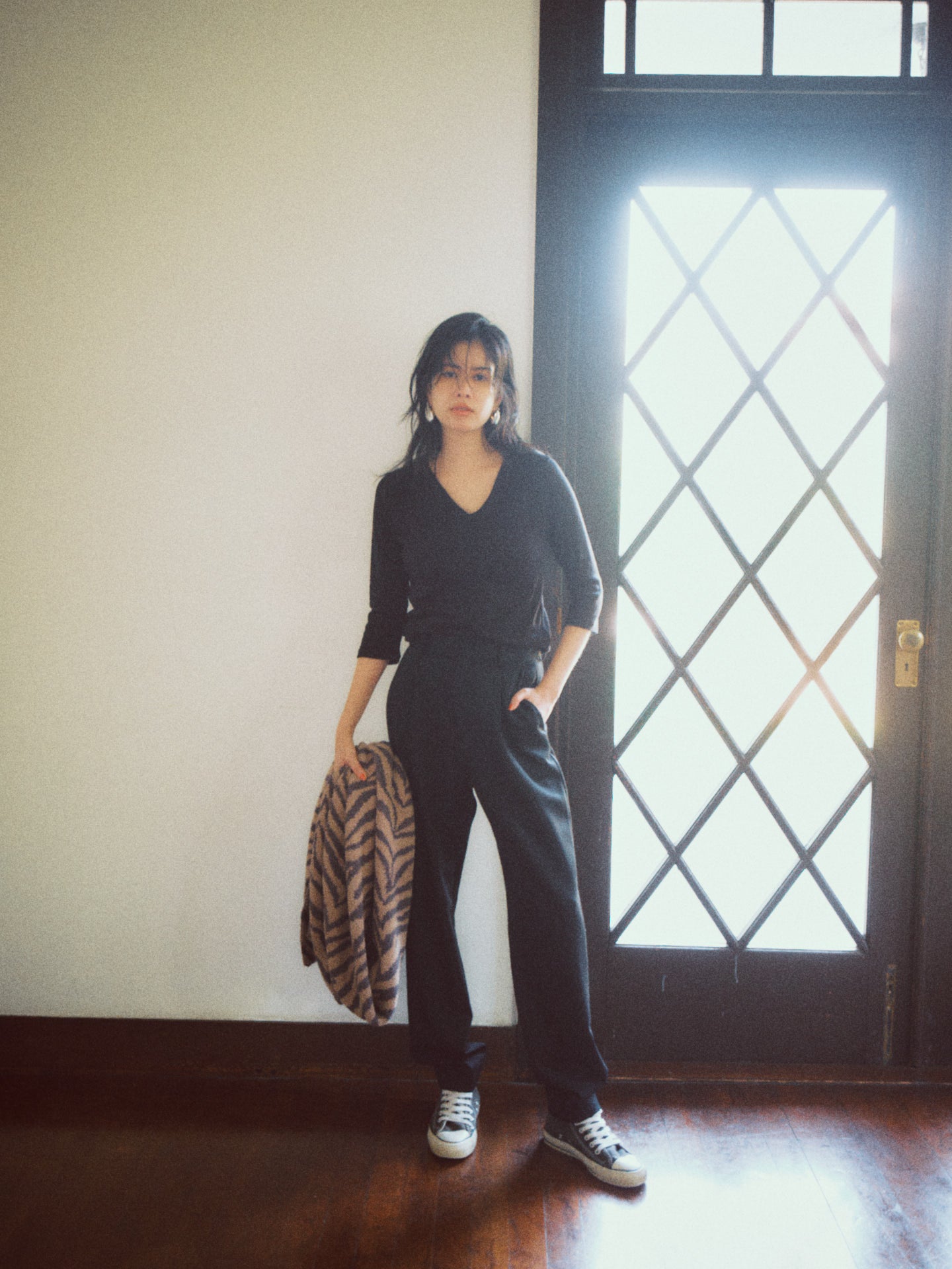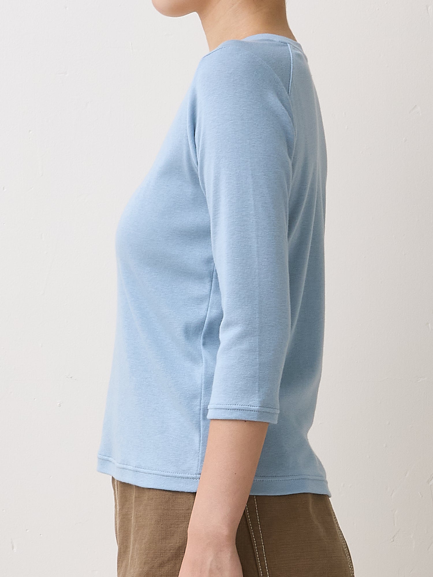 経験を重ねたマチュアな大人にとって、「おしゃれは我慢」なんてナンセンス。モードかつ着心地にこだわったアイテムこそがステディです。そこでお届けしたいのが、シンプルなカットソーをTHE NEWHOUSEが得意とするコットンカシミヤで編み上げたTHURLOEシリーズ。カシミヤを10%も配合した生地は、軽く美しい透け感を持つだけでなく、とても温か。ボディラインを美しく引き立てながら、余計なものを拾わないコンパクトなシルエットです。THURLOE V NECKはシンプルな形だからこそ、ショルダーにアクセントとなるディテールを入れ、ロングシーズン使える七分袖に。浅すぎず深すぎないVネックは、デコルテを美しく見せながら、上品な色香を漂わせます。カラーはニュアンシーなアイボリー、シックなスモークブルー、旬のコーヒー、エレガントなブラックの4色展開。展示会で大人気だったコーヒーは、RAGFORD JACKETのようなトレンドのブラウンアウターのインに合わせ、ワントーンコーデを楽しむのがおすすめです。大人のわがままを納得させてくれる一枚。ぜひ袖を通してみて。
